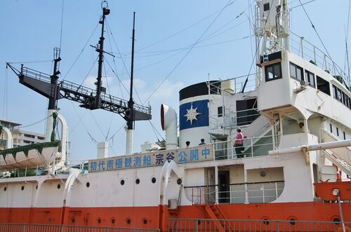 青函連絡船の羊蹄丸を見学した後は、隣に停泊している南極観測船の宗谷を見に行きました。この船、1938年竣工の旧帝国海軍艦艇だったのですね。 元々は貨物船だったのですが、戦後に南極観測船として改修されたとのことです。 中はほとんど南極観測船当時の…