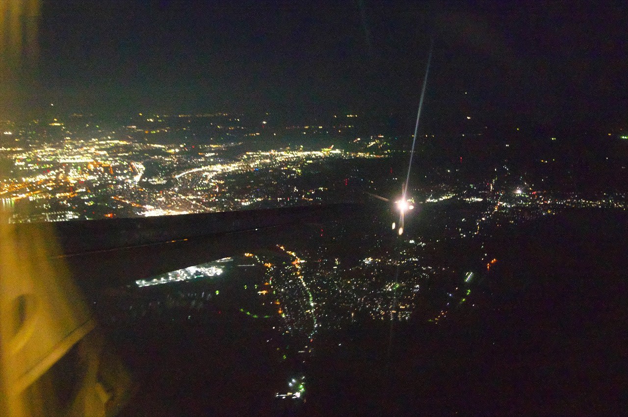 遠くにアメリカンビレッジが見えてきました。陸路では1時間も2時間もかかる道のりですが、飛行機ではあっという間に通過ですね。